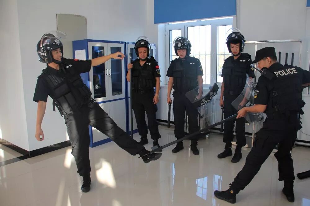 演练开始前,法警大队队长李阳为大家重温讲解了防暴叉、盾牌及警戒具的使用方法,让每位司法警察都熟练掌握警戒具的使用后,开始了演练活动。当安保人员客串的“当事人”因受到安检人员阻拦拿砖头再次强行进入时,安检人员打开执法记录仪保存证据的同时,向法警大队队长汇报了现场情况,大队长接到汇报后立即带领处突小组携带装备到达现场。当事人见状后情绪失控,袭击警员。队长第一时间疏散其他当事人,处突小组全力控制并制服袭击警员的当事人,将其带到羁押室,随后,大队长报告主管院长并拨打了110报警电话等待公安局前来处理。