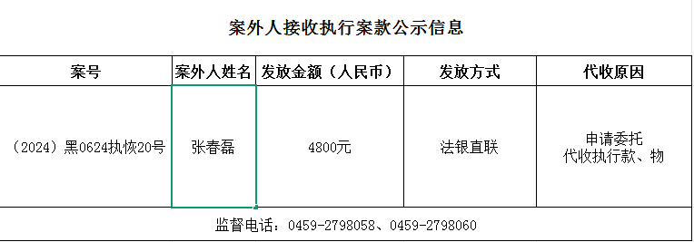 杜尔伯特县人民法院关于向案外人发放案款的公示