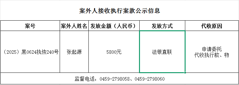 杜尔伯特县人民法院关于向案外人发放案款的公示