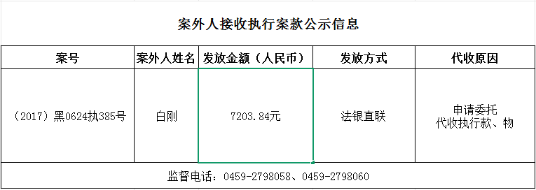 杜尔伯特县人民法院关于向案外人发放案款的公示