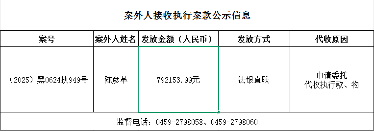 杜尔伯特县人民法院关于向案外人发放案款的公示