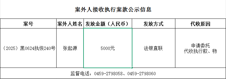 杜尔伯特县人民法院关于向案外人发放案款的公示