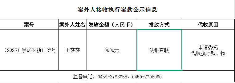 杜尔伯特县人民法院关于向案外人发放案款的公示