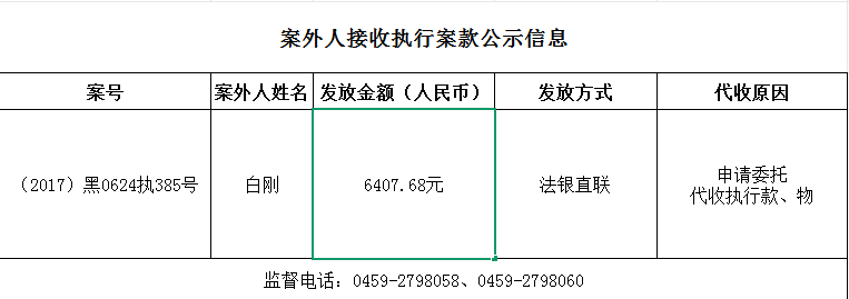 杜尔伯特县人民法院关于向案外人发放案款的公示