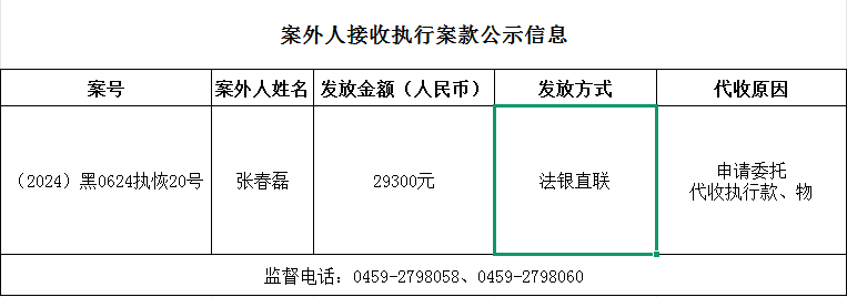 杜尔伯特县人民法院关于向案外人发放案款的公示