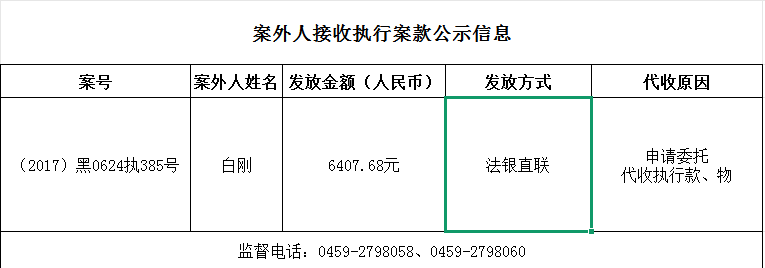 杜尔伯特县人民法院关于向案外人发放案款的公示