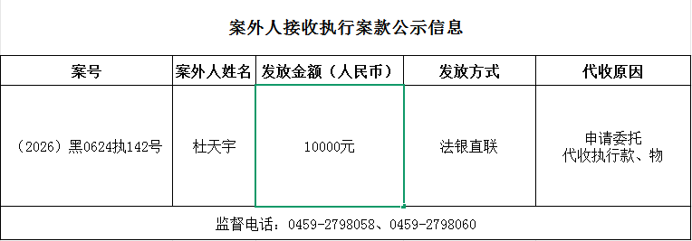 杜尔伯特县人民法院关于向案外人发放案款的公示