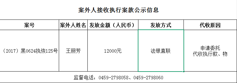 杜尔伯特县人民法院关于向案外人发放案款的公示