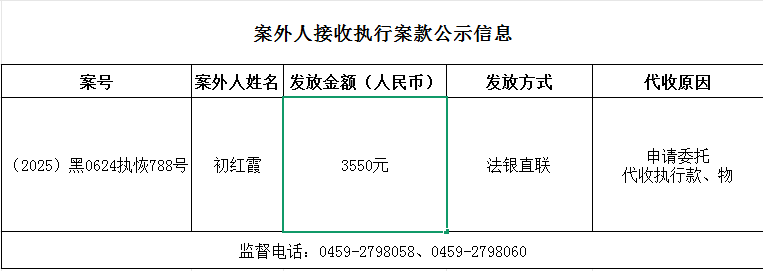 杜尔伯特县人民法院关于向案外人发放案款的公示